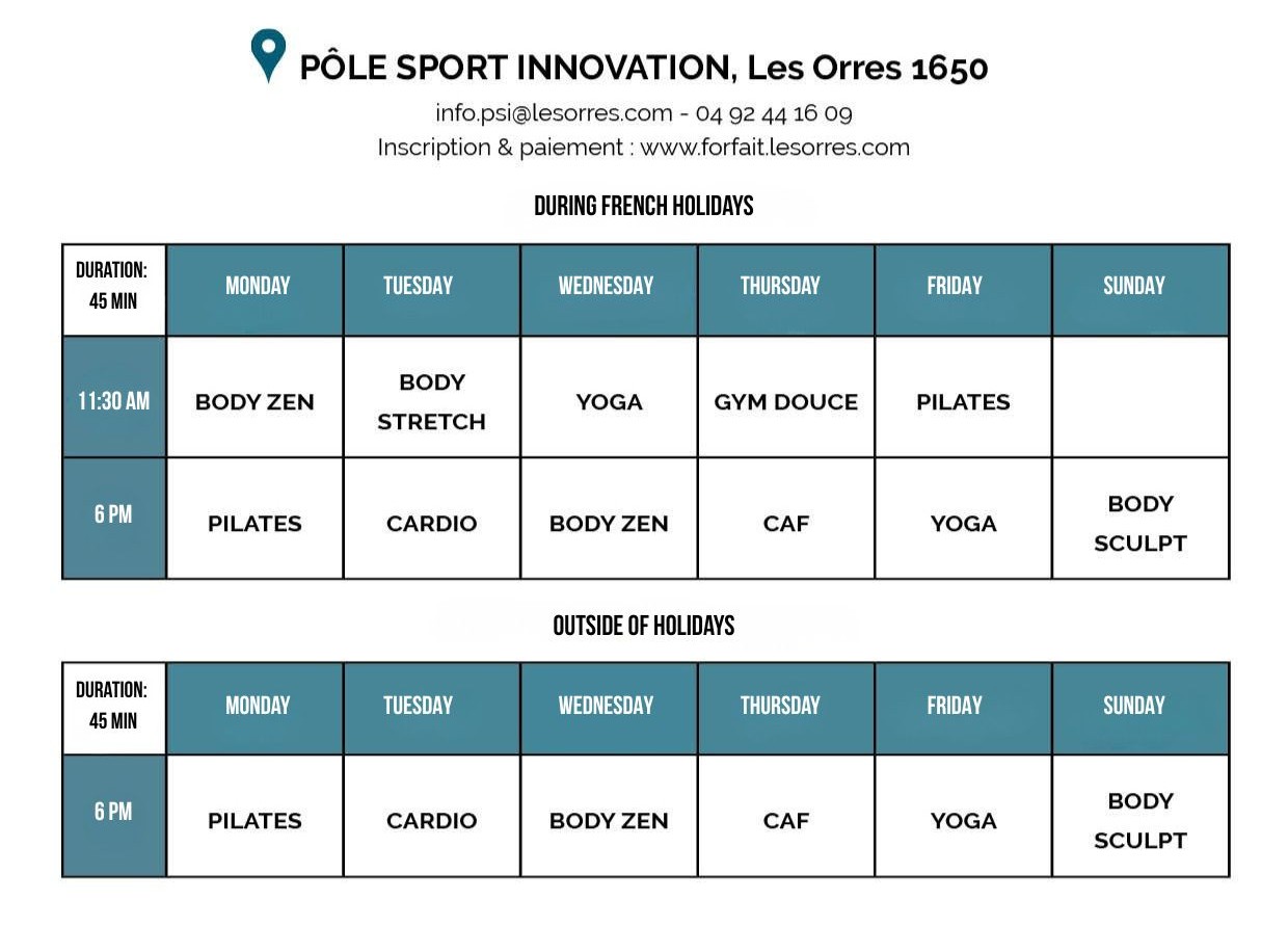 | 20 minutes : 30 € 50 minutes : 75 € Sales / booking only at the Pole Sport Innovation's reception | |